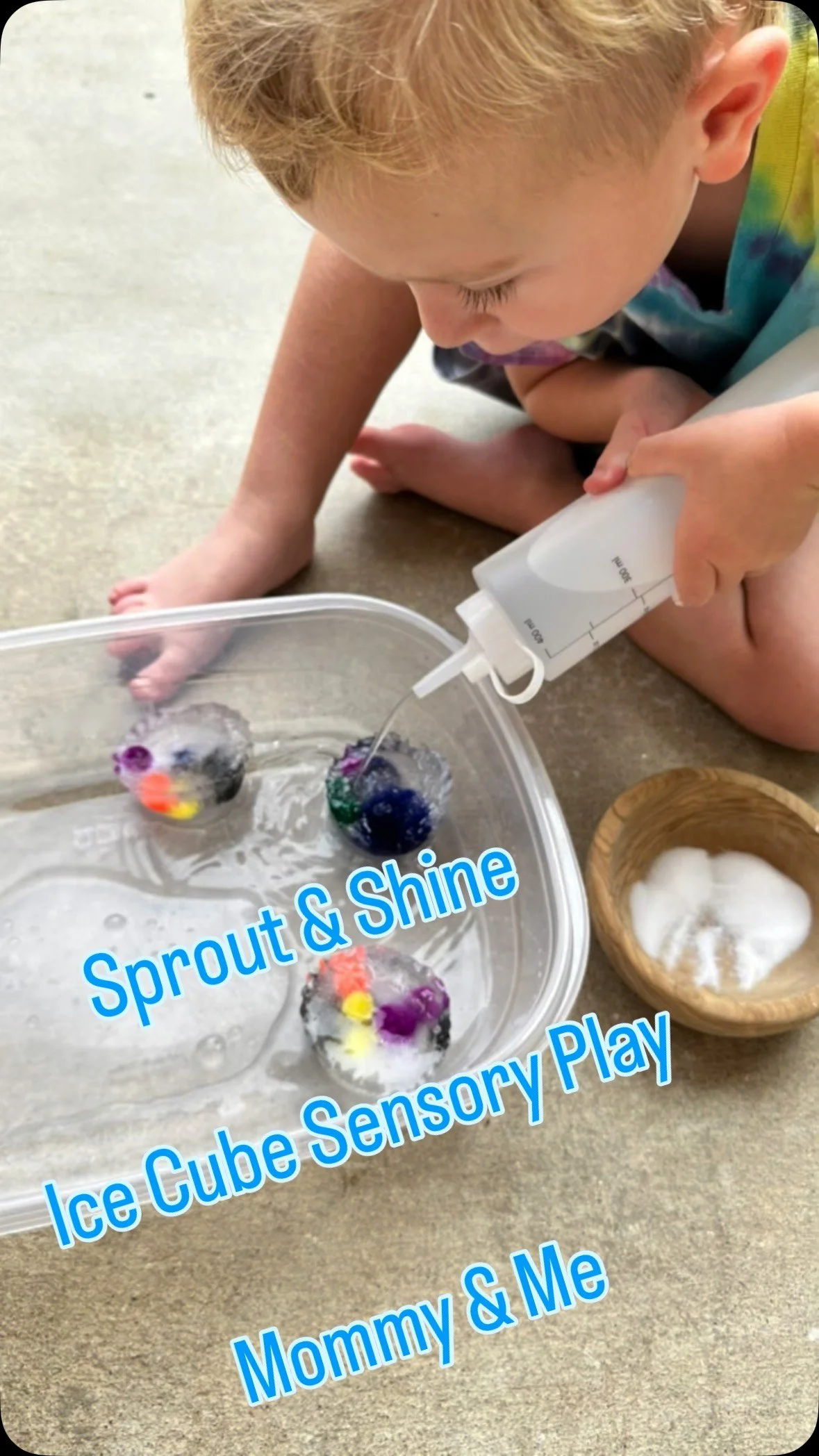 This activity is centered on 4 ideas; exploration & discovery, cause & effect, sensory adaptation, and social & emotional development.